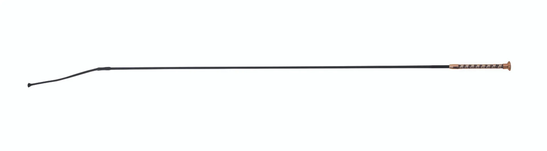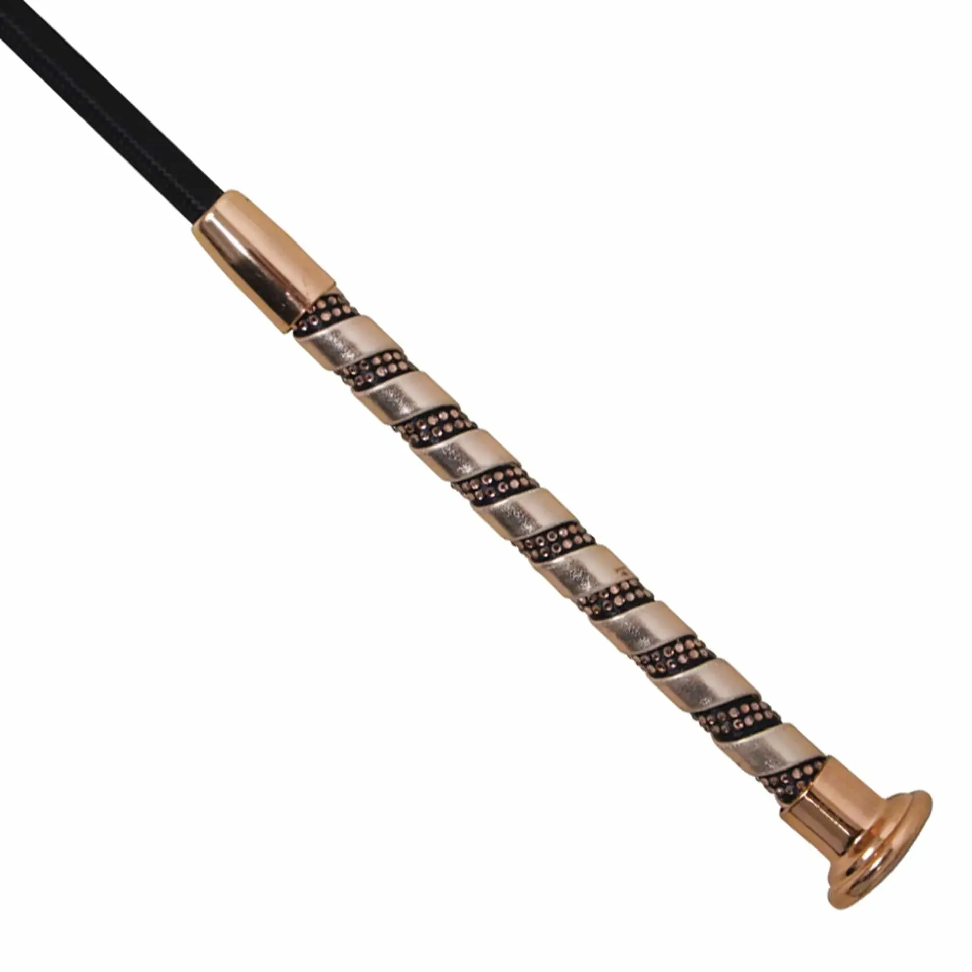 Set the trend with this beautiful dressage whip which features a fashionable rose gold handle with a spiral of rose gold crystals in a double row. A matching rose gold cap ensures a practical grip when in use. A plain black shaft completes the understated, classical look