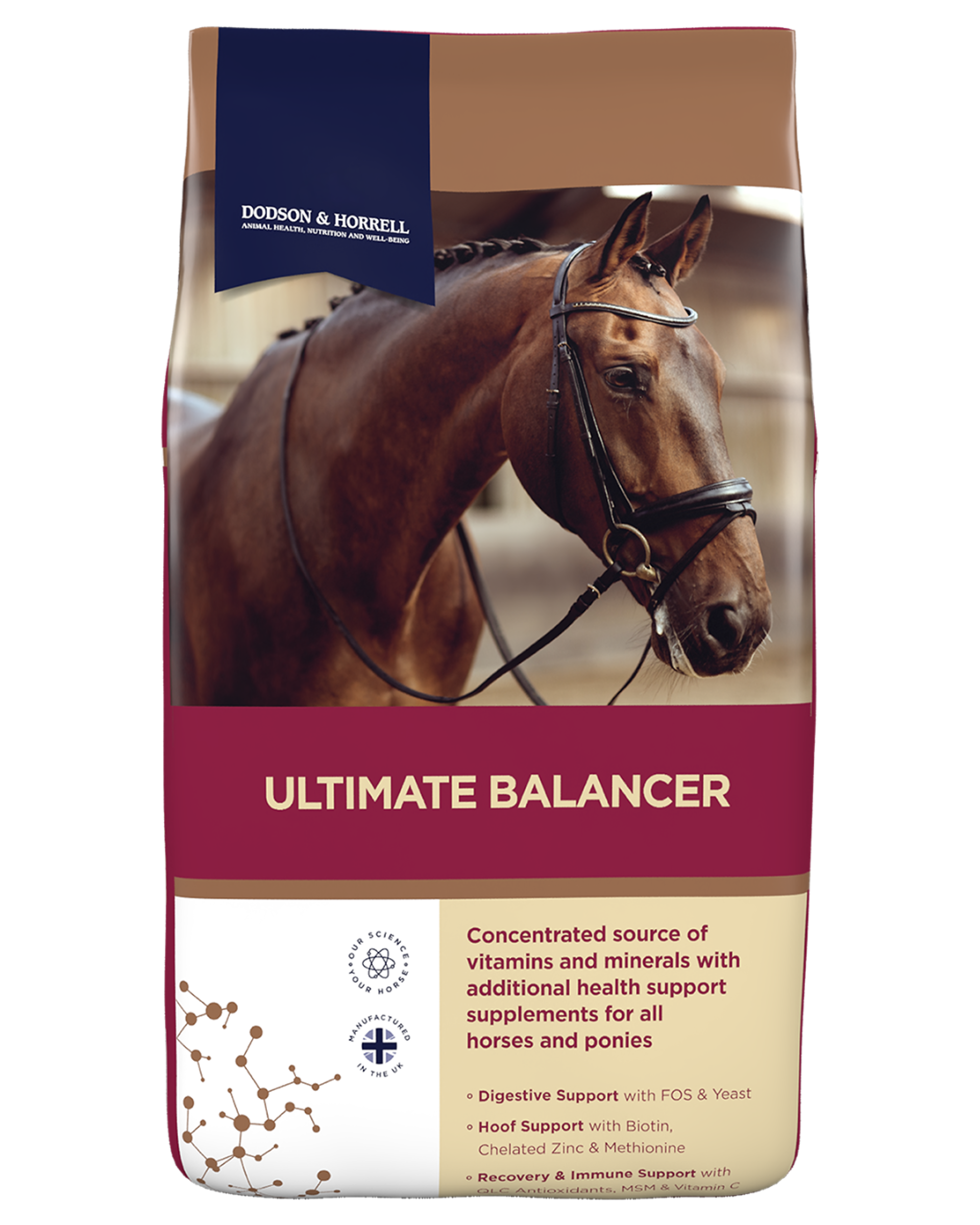 Incorporating the latest nutritional advances into equine feeding, including our research into antioxidants and vitamin and mineral levels in pasture, Ultimate Balancer ensures your horse or pony has all the nutrients they need. Ideal for topping-up natural vitamin levels in forage and for producing essential amino acids for overall health and muscle development.