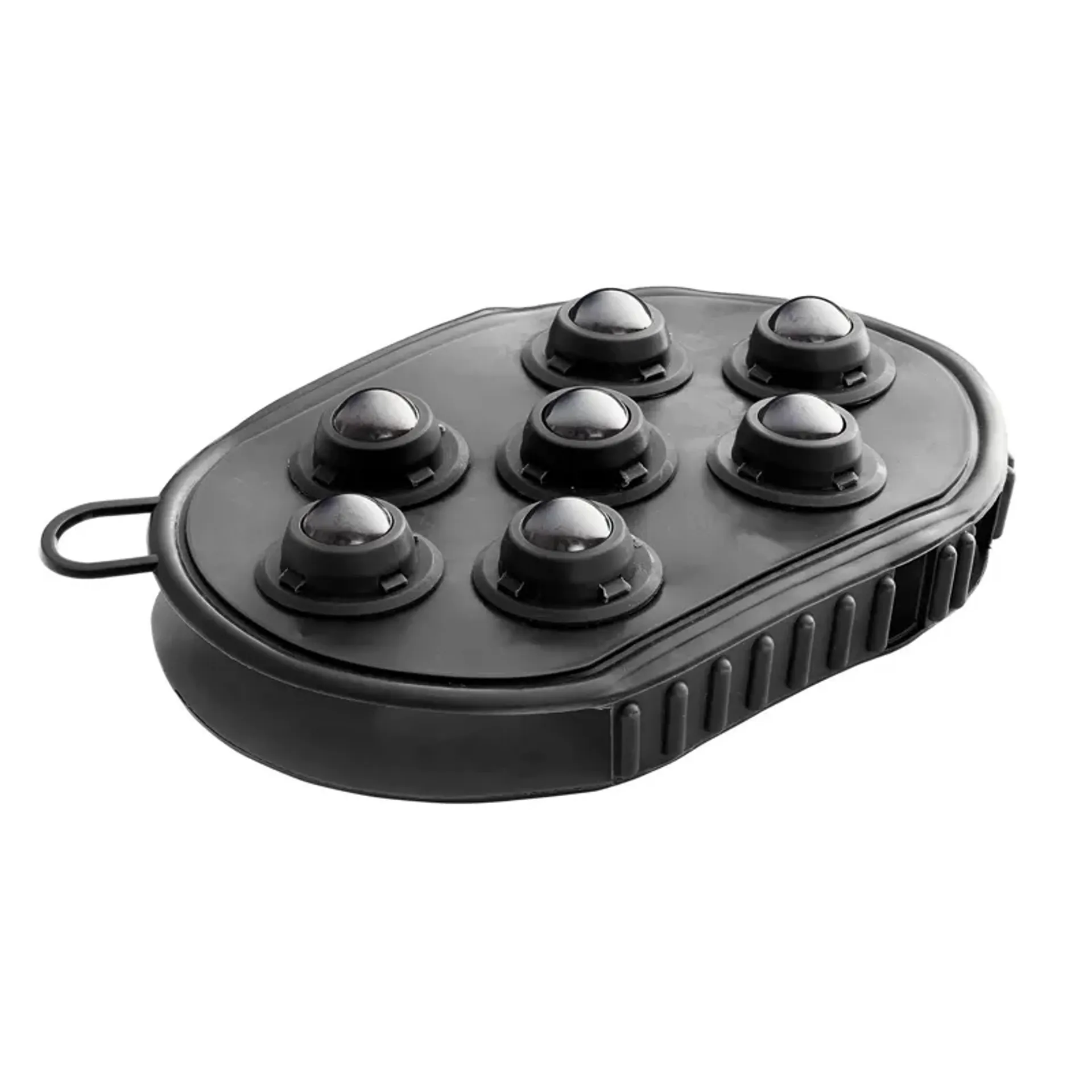 Clever massage mitt that fits onto your hand and has metal balls that massage the horse as you work in circular motions on their coats.